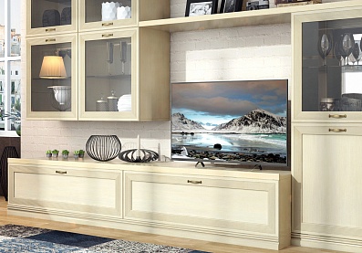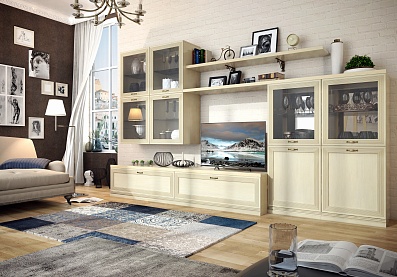 - Отделка фасадов выполнена испанским шелковисто-матовым лаком и патиной (эффект состаренного дерева);