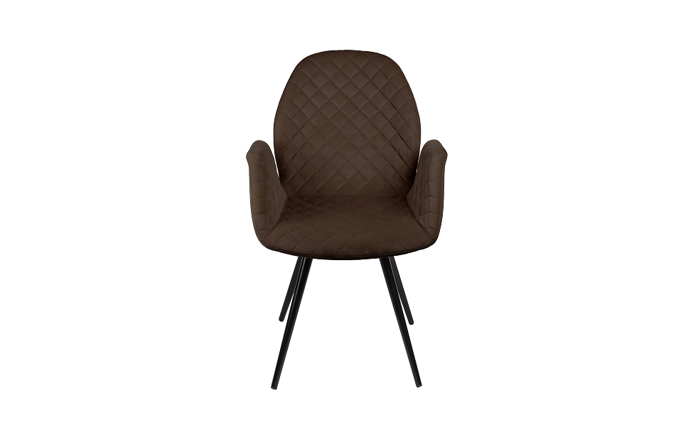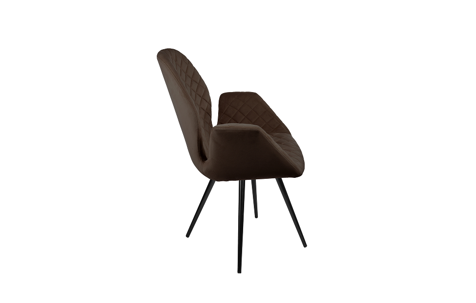 Стул-кресло Сохо с поворотным механизмом прекрасно впишется в любой интерьер и комнату. Такой стул можно использовать как в качестве обеденного стула, так и в виде рабочего кресла к письменному столу. Обивка из велюра в актуальном коричневом оттенке прекрасно гармонирует с металлическими ножками черного цвета. Такие стулья украсят современные интерьеры, а также пространства в стиле эклектики.