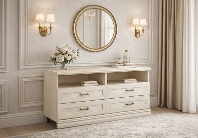 • Под крышкой тумбы — два выдвижных ящика на направляющих скрытого монтажа со встроенным доводчиком;