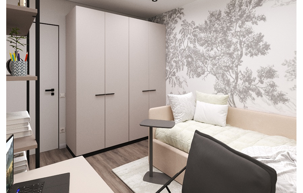 – описание: стиль современный, минимализм, цвет кашемир серый, назначение для дома, размер спального места 90 х 200 см.