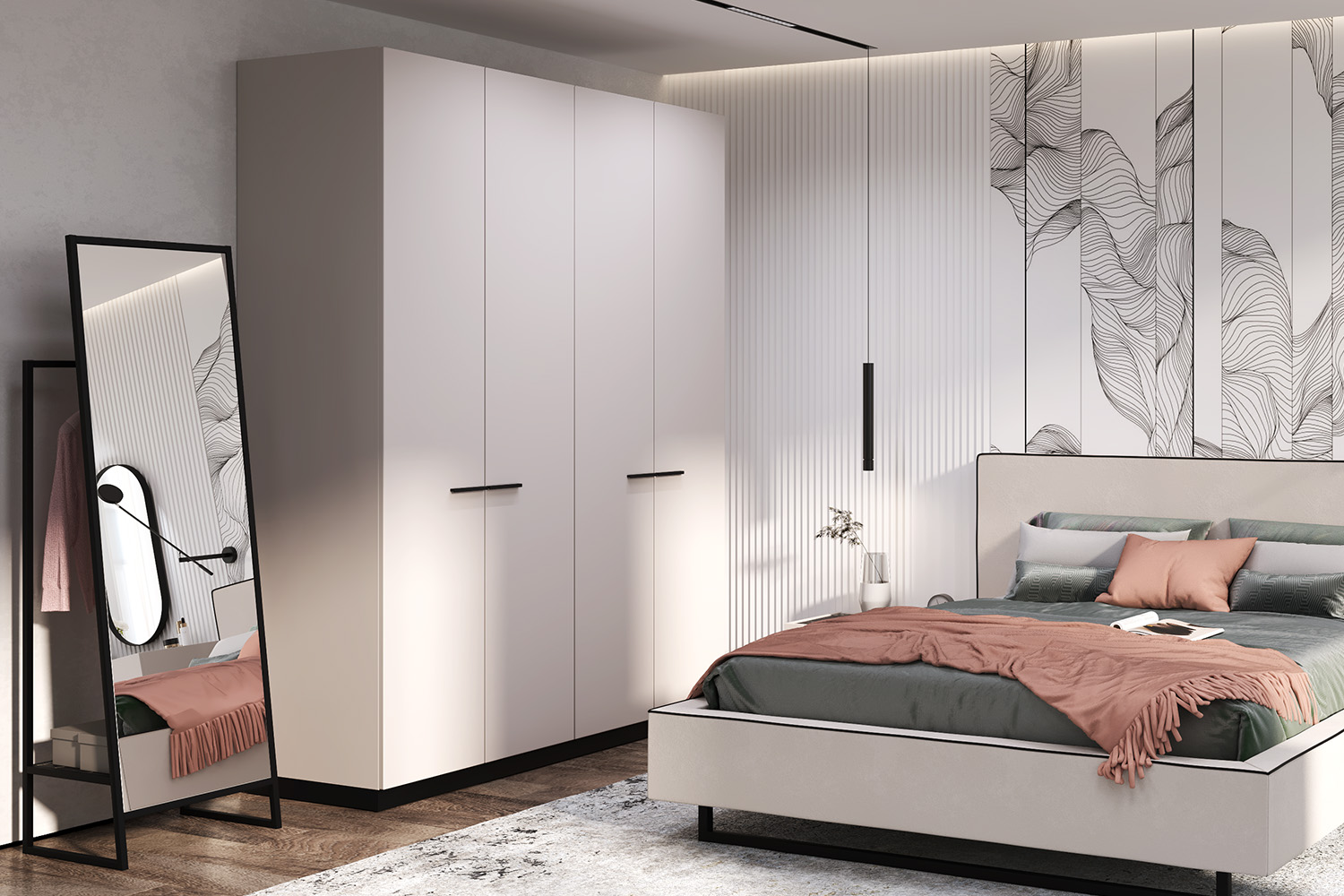 – описание: цвет кашемир серый, черный графит, назначение для одежды, стиль современный, минимализм, размер 229.1x90x61.1 см.